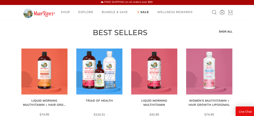 品牌定位:MaryRuth’s 是一家专注于提供高质量、有益健康维生素和补充剂的公司,产品覆盖所有生命阶段,包括婴幼儿、青少年、成人和40岁以上人群。他们提供液体、软糖、胶囊等多种形式的产品。