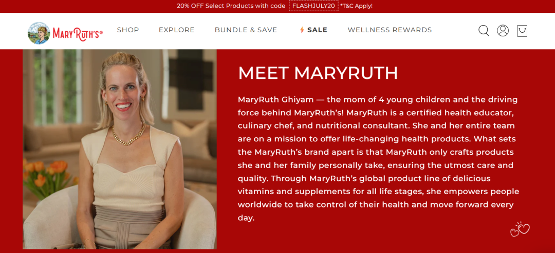 Mary Ruth 是一个真实存在的人,她为自己和家人配制这些维生素,这种热情贯穿于品牌与消费者的每一次沟通中。